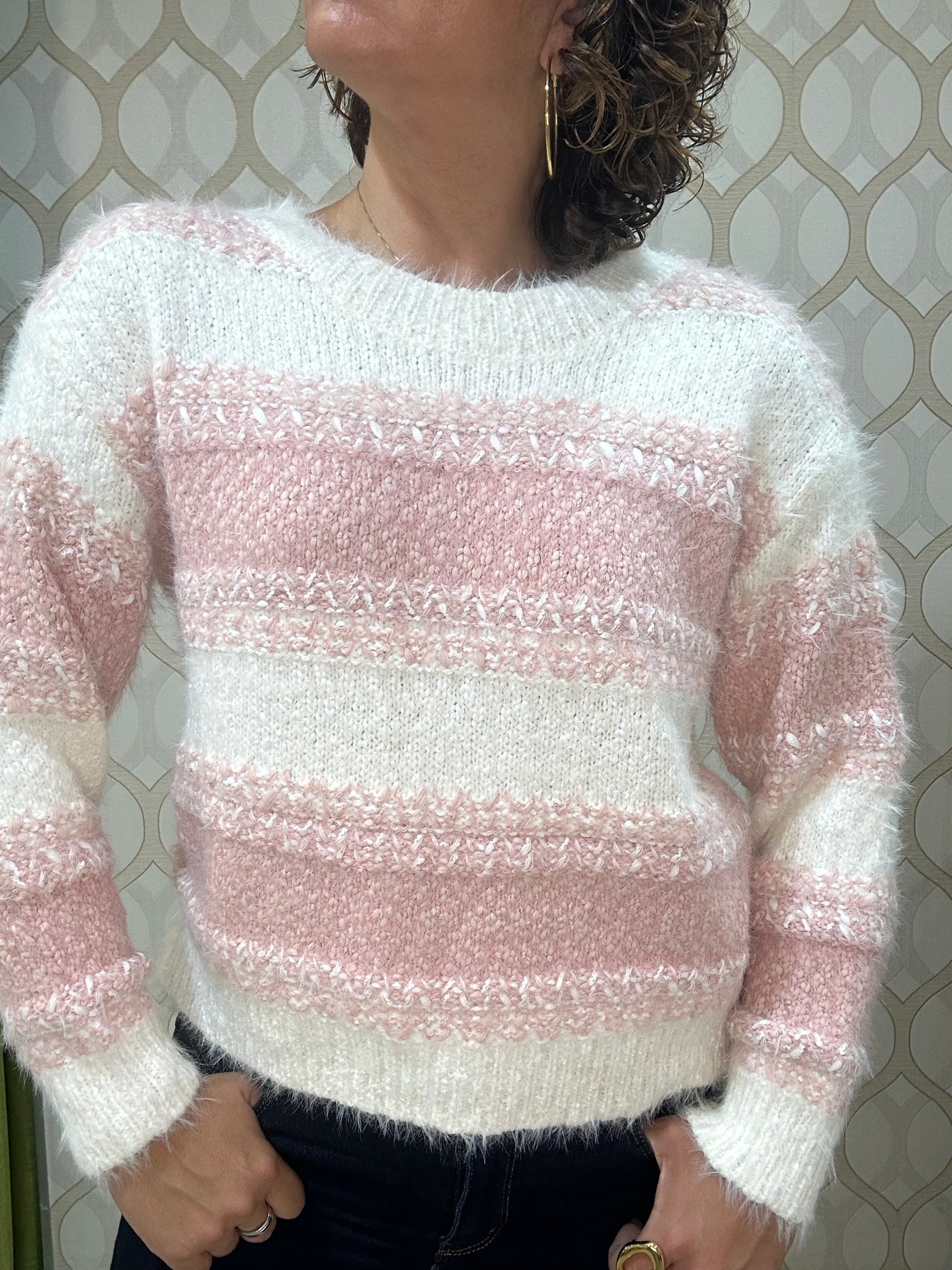 Jersey de tacto muy suave, en colores blancos y rosa