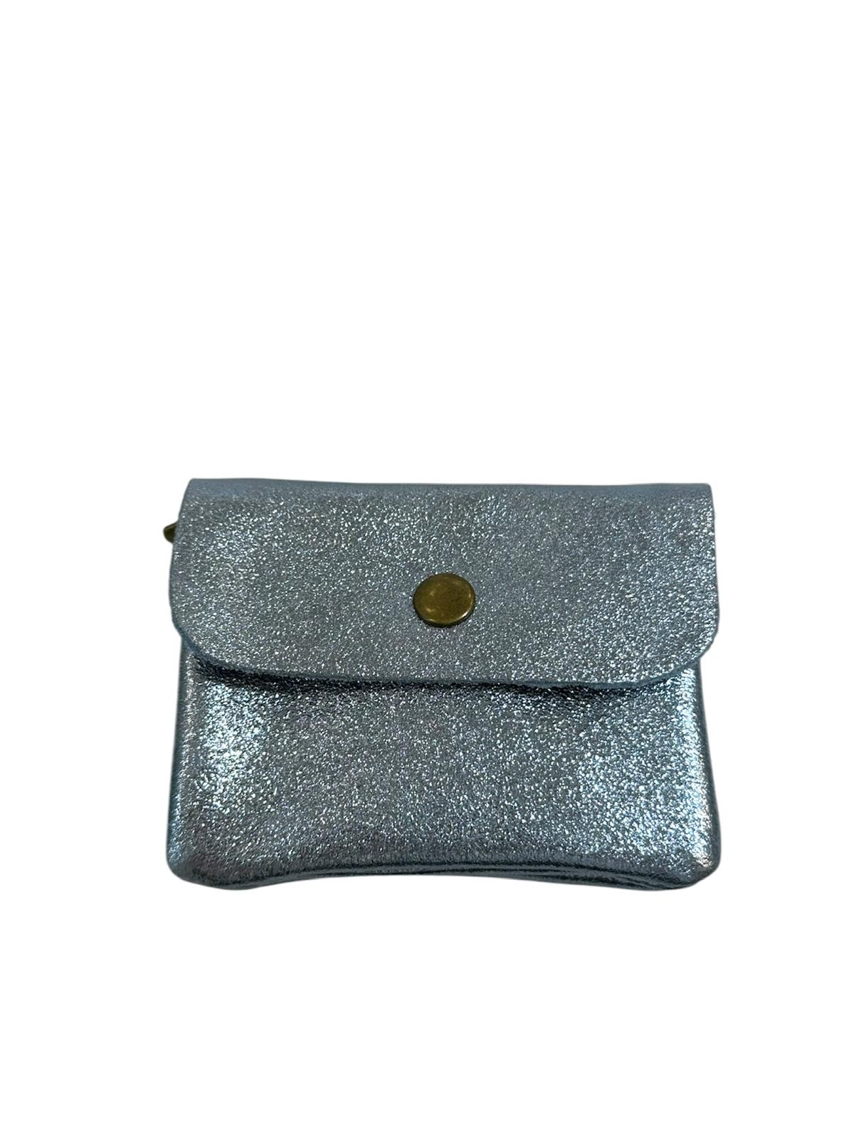 Monedero efecto piel metalizada, con cremallera en el inerior y varios compartimentos.